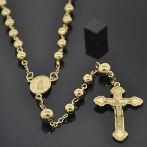 18 K Gold Over Silver Rosary Necklace 30” Long
