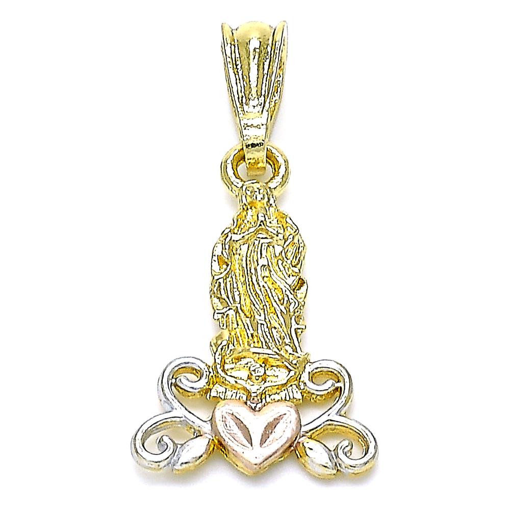 Tri tone 18K gold layered Our Lady of Guadalupe medal hearts with 18” chain