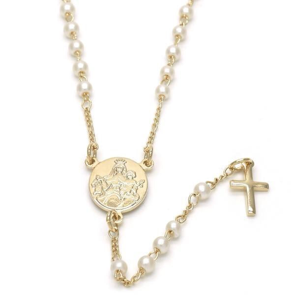 CARIDAD DEL COBRE IVORY MOTHER OF PEARL ROSARY NECKLACE