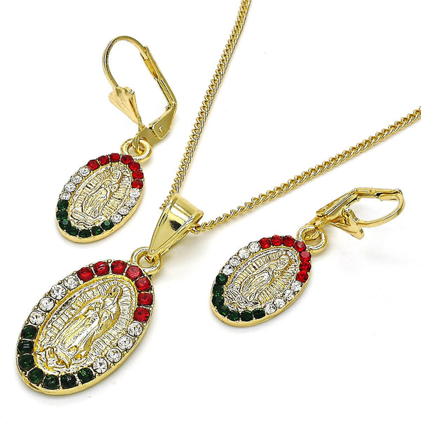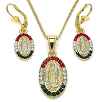 MULTI COLOR GUADALUPE SET WITH CHAIN AND EARRINGS