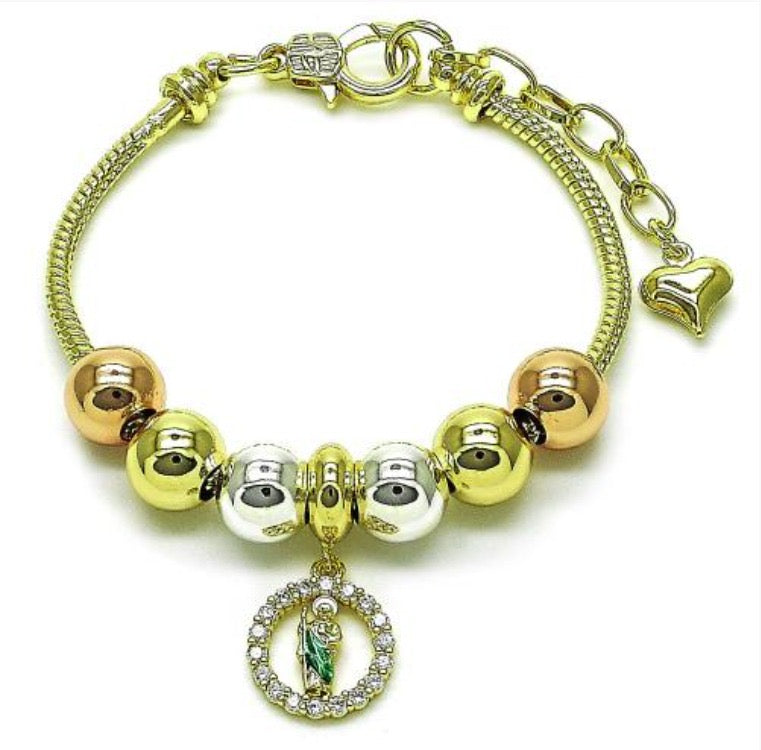 Tri tone bracelet with color Saint Jude medal