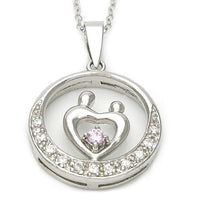 HEART MOTHER AND BABY NECKLACE STERLING SILVER 18" WITH CUBIC ZIRCONIA