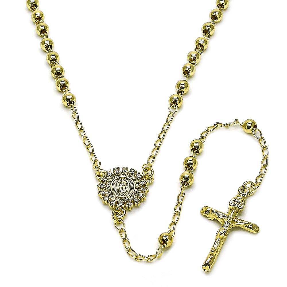 24” Thin Rosary necklace with Our Lady of Guadalupe and white cubic zirconia