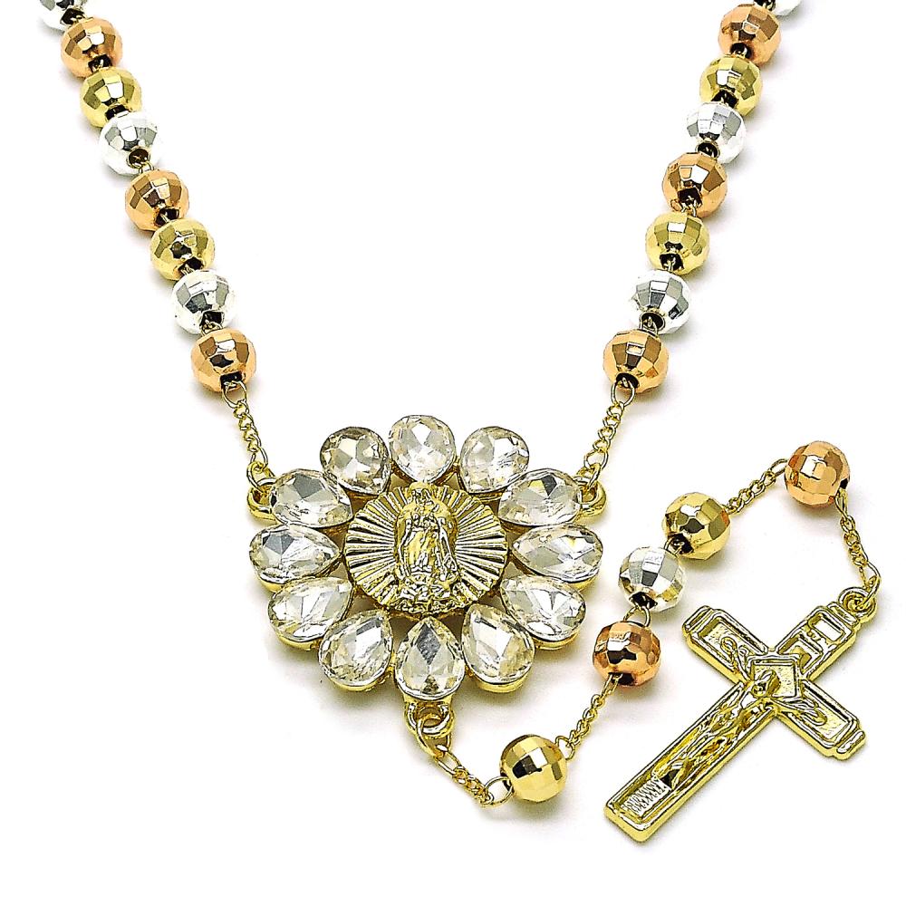 Tri color Our Lady of Guadalupe medal Rosary necklace with cubic zirconia