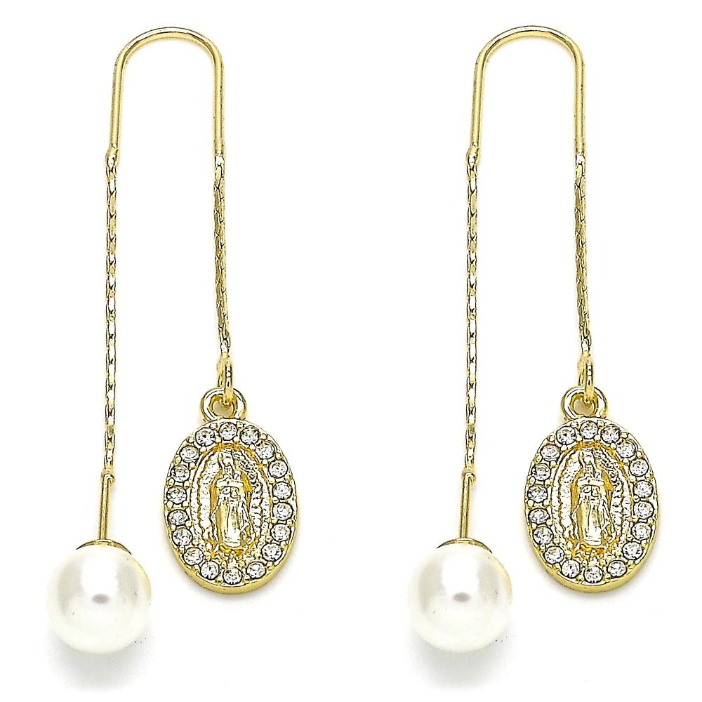 Dangle earrings with Our Lady of Guadalupe medal and pearls