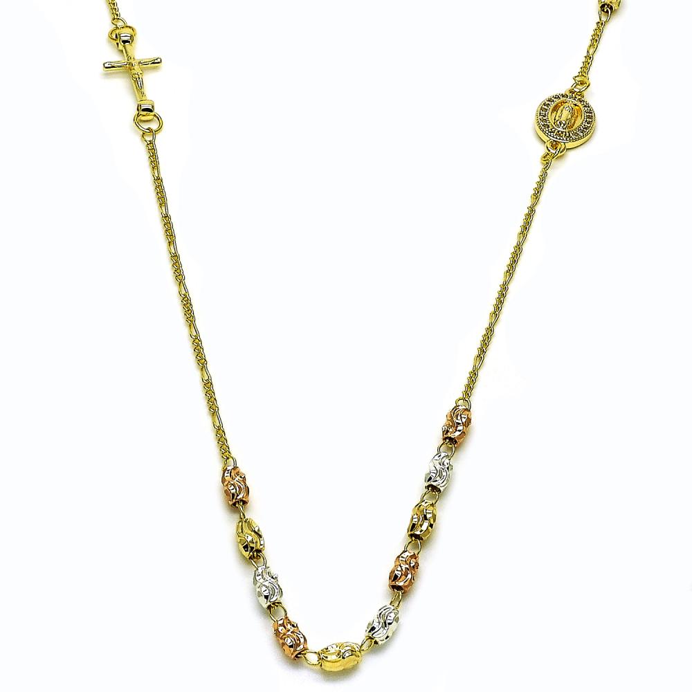 Tri tone necklace with Our Lady of Guadalupe and crucifix