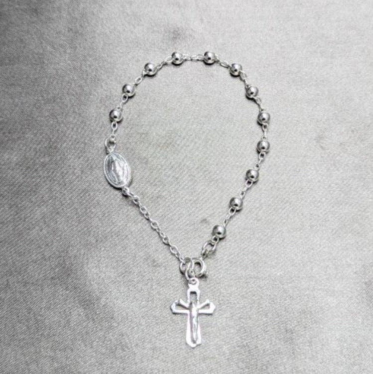 Sterling silver Rosary bracelet with Miraculous medal, 925 sterling italian silver