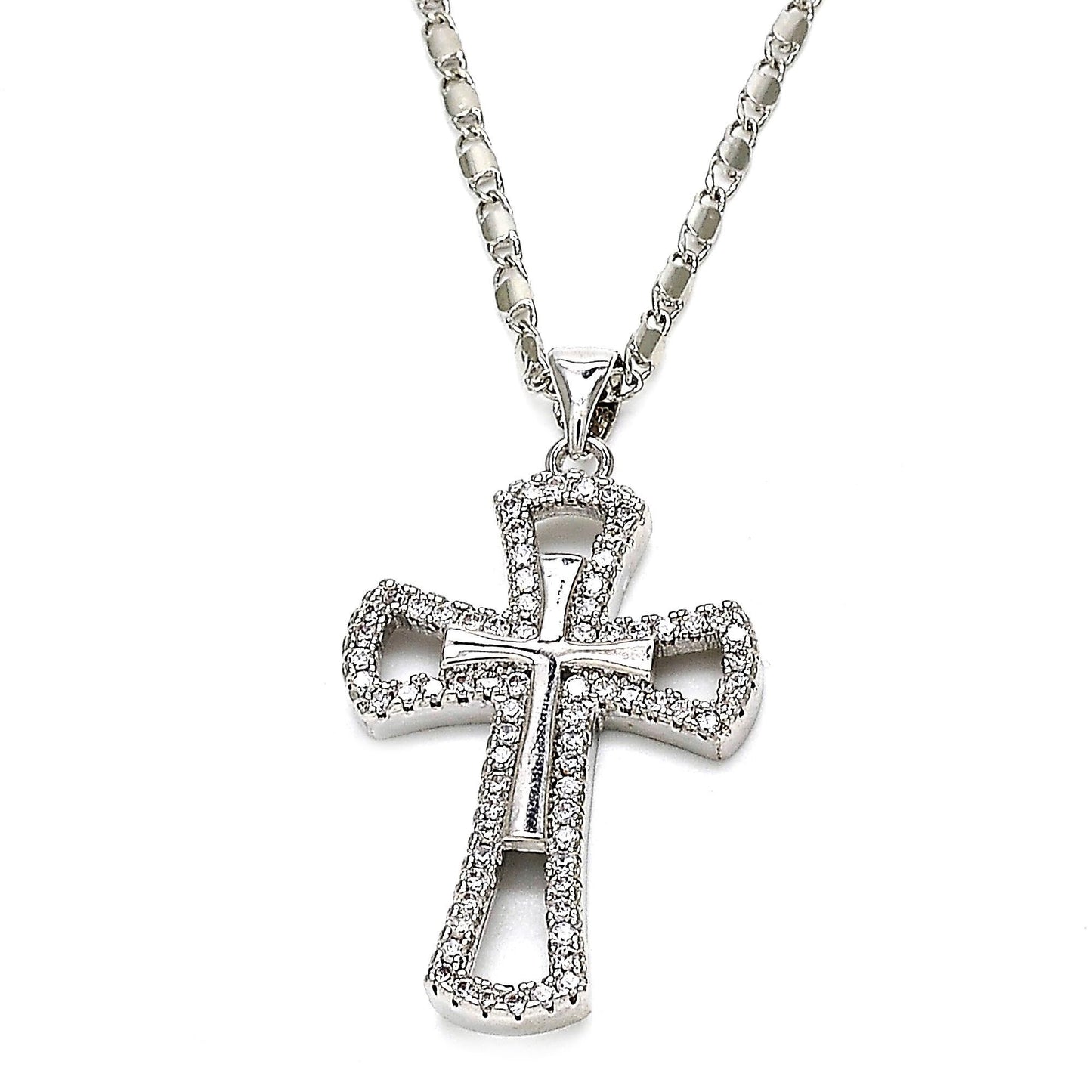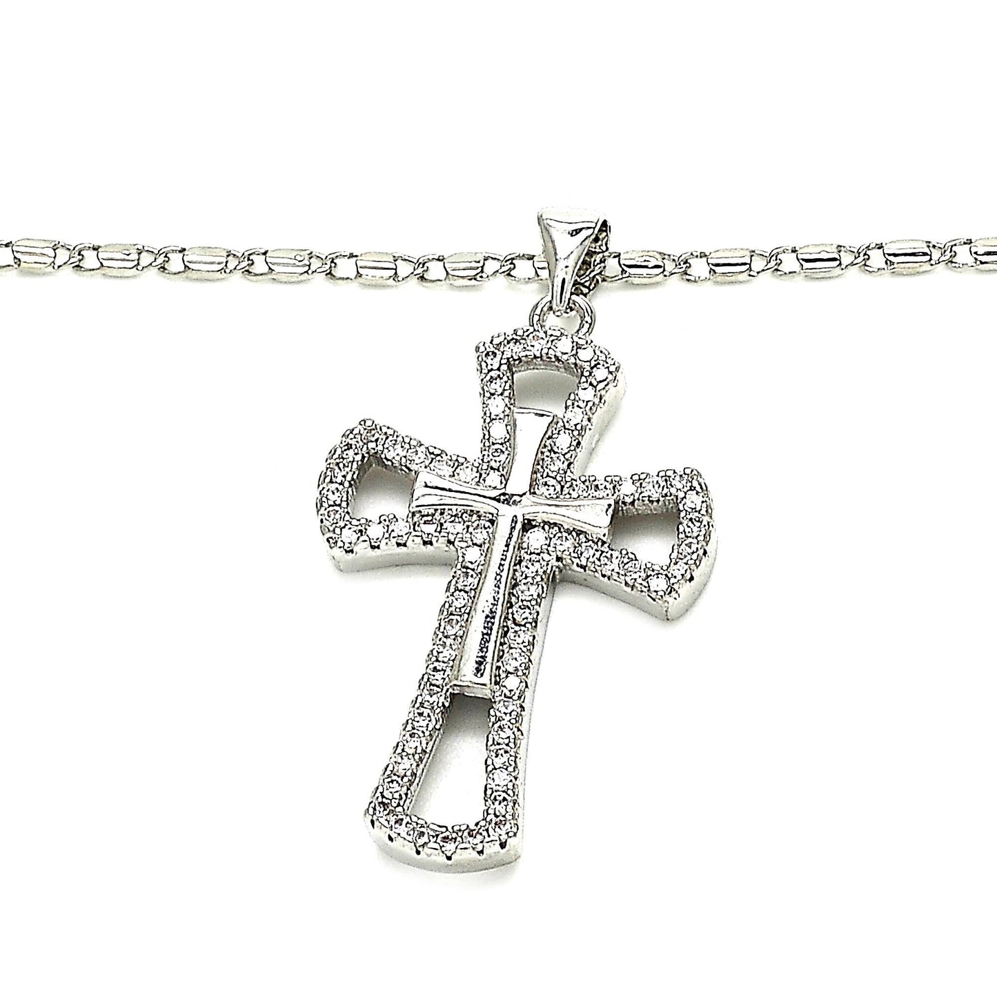Rhodium Silver cross with cz stones with chain