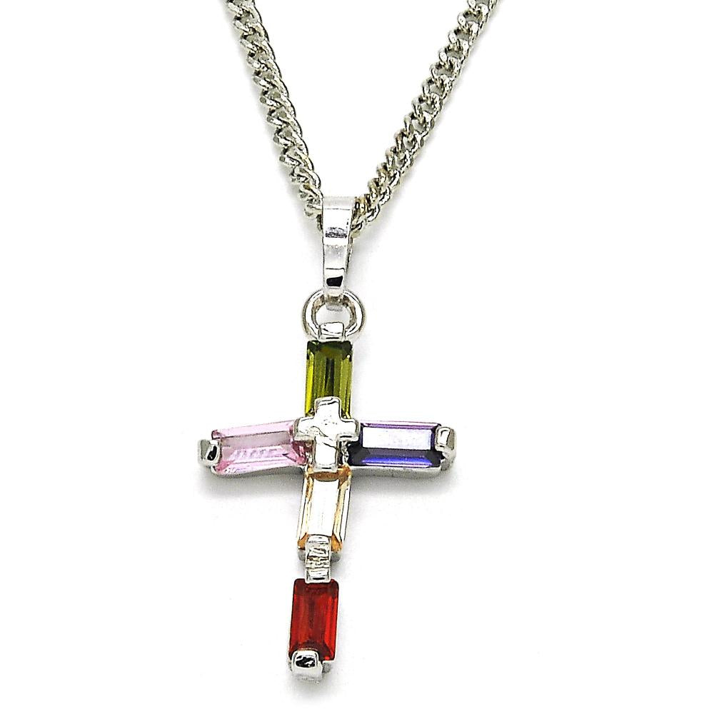 Multi color cubic zirconia cross 18k rhodium with 20” chain