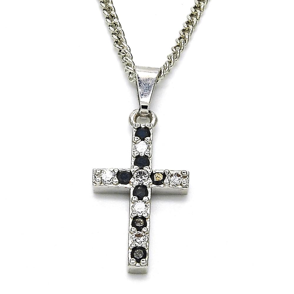Rhodium silver color cross black and white cubic zirconia with 20” chain