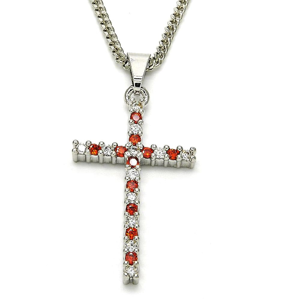 white gold layered cross with red cubic zirconia and 20” chain