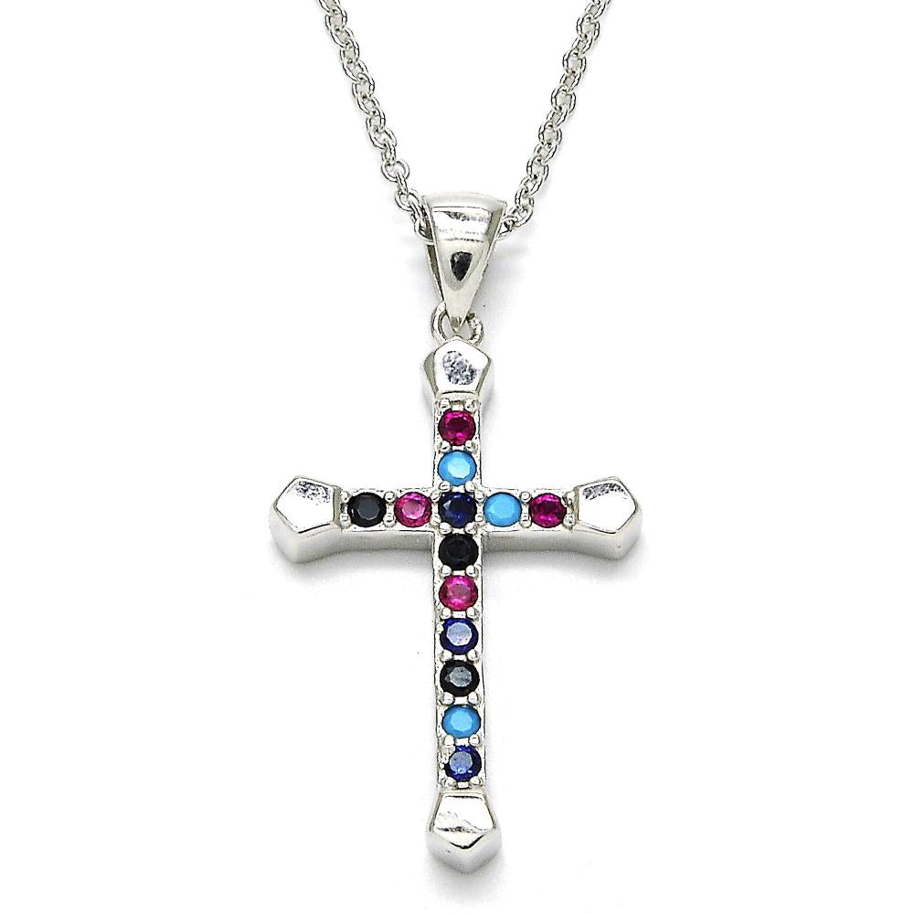 Sterling silver cross with color cubic zirconia