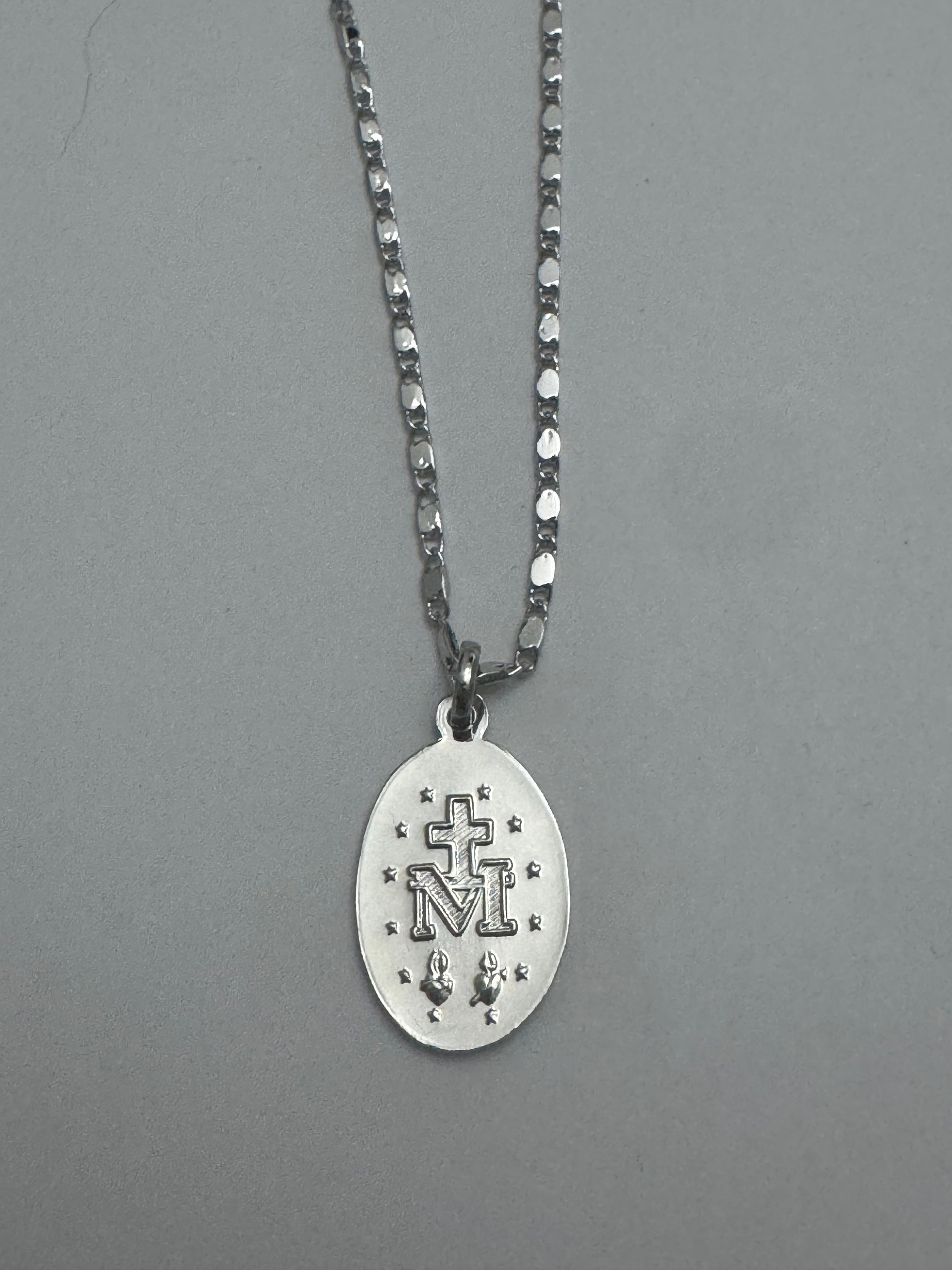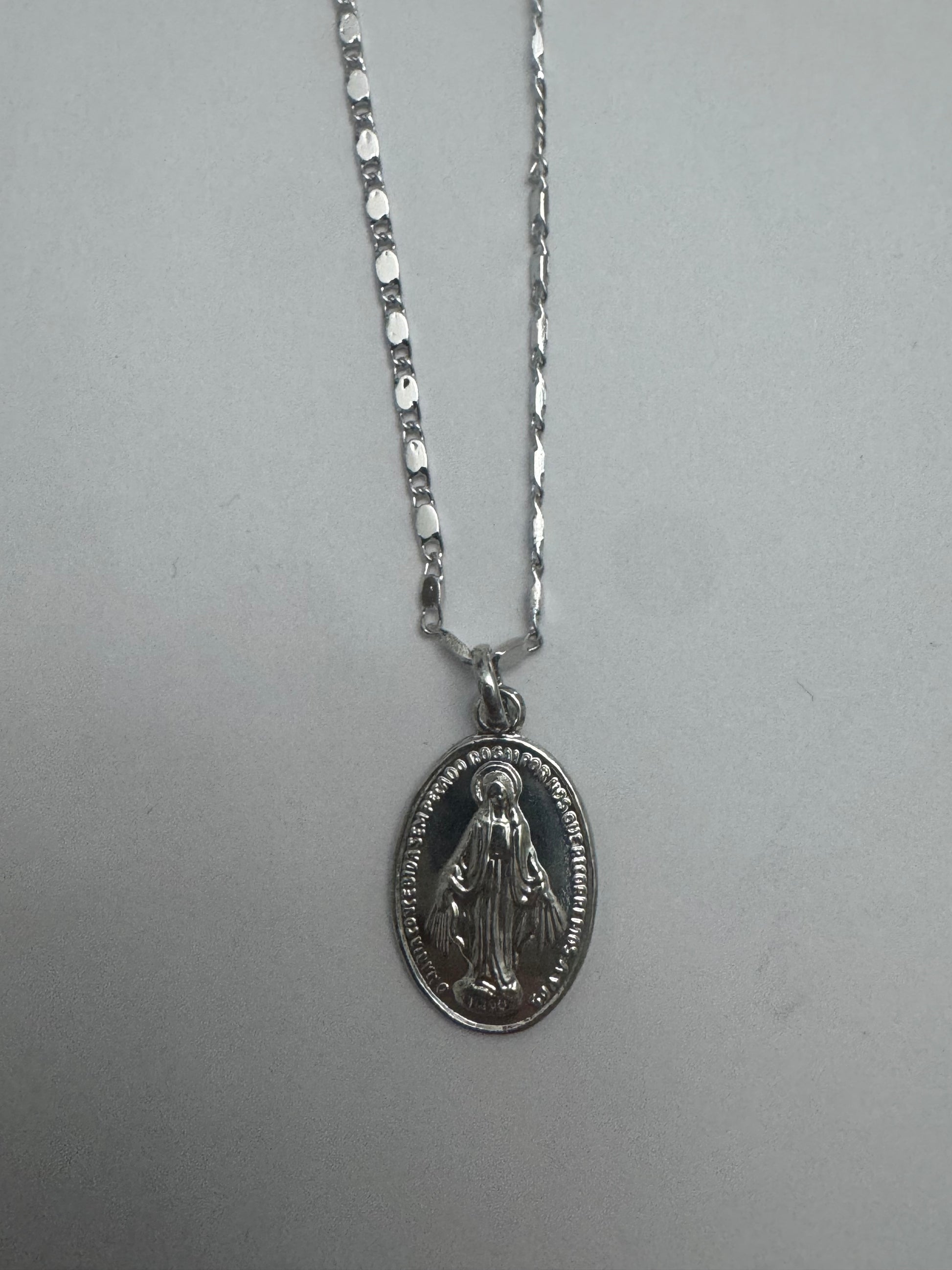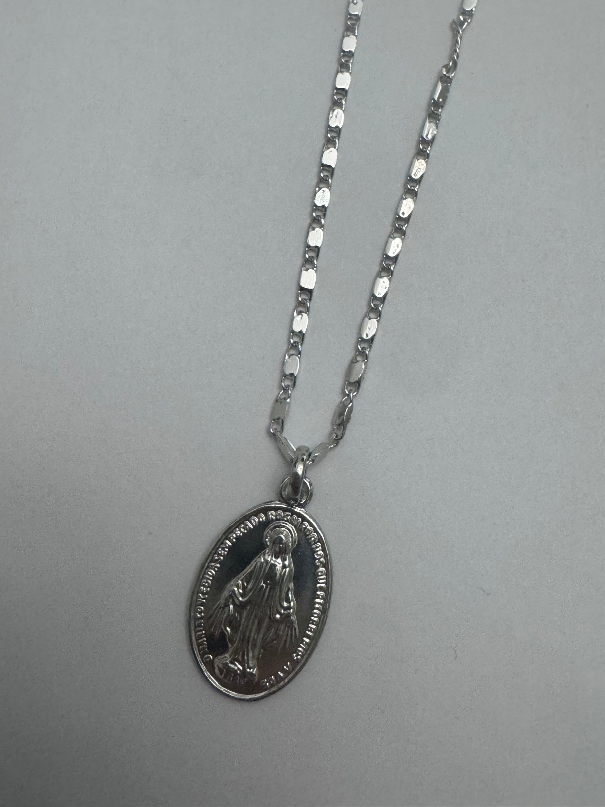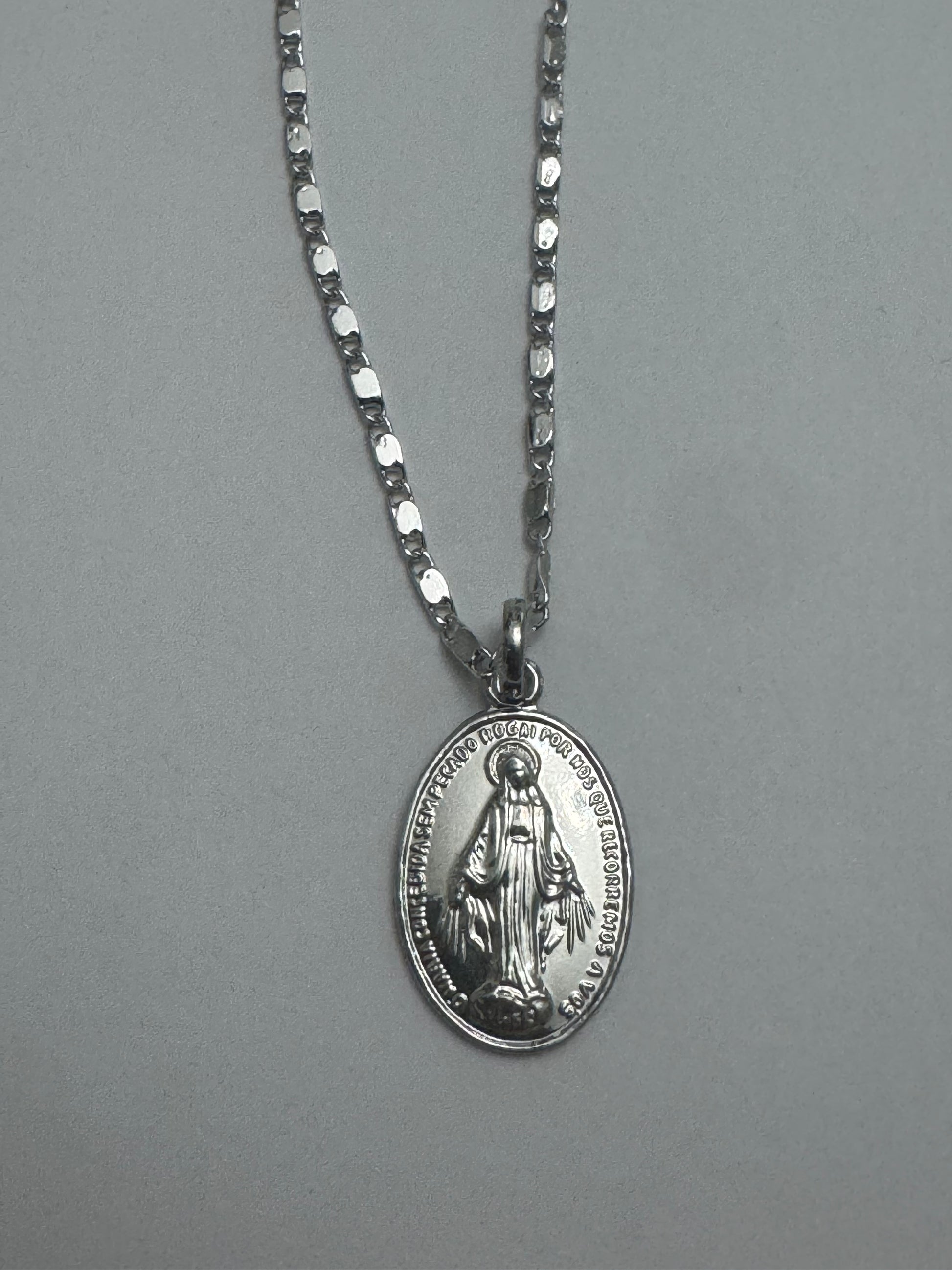 Rhodium silver Miraculous Medal with 18” chain