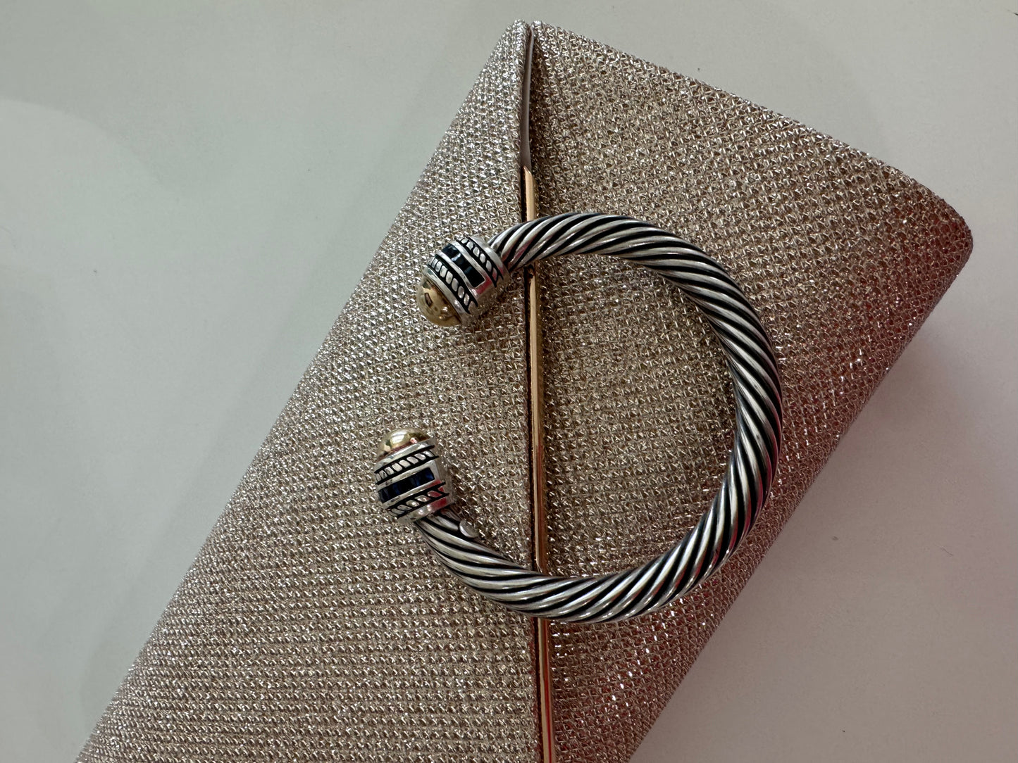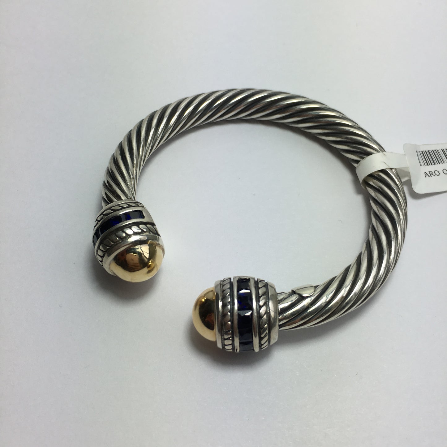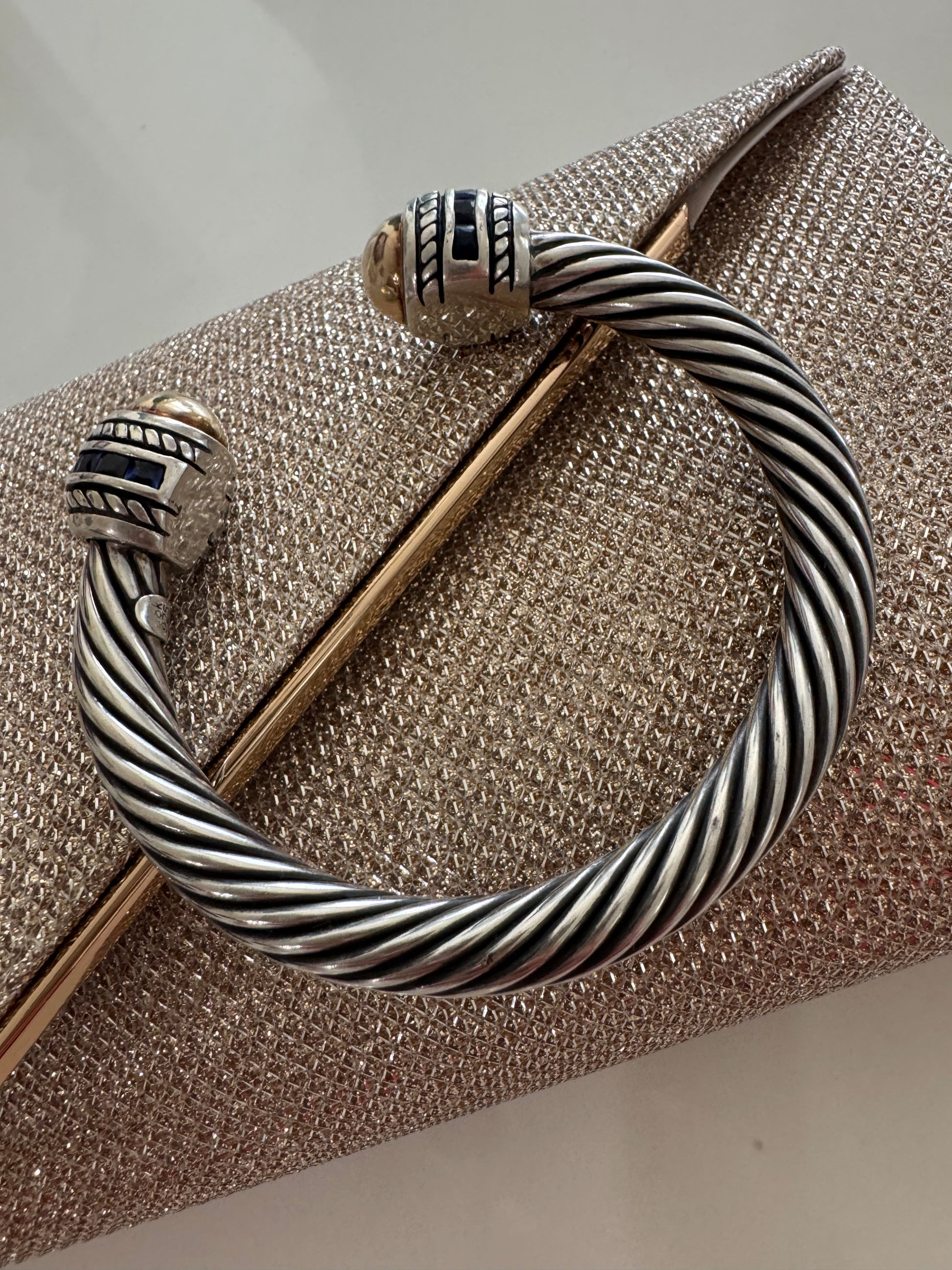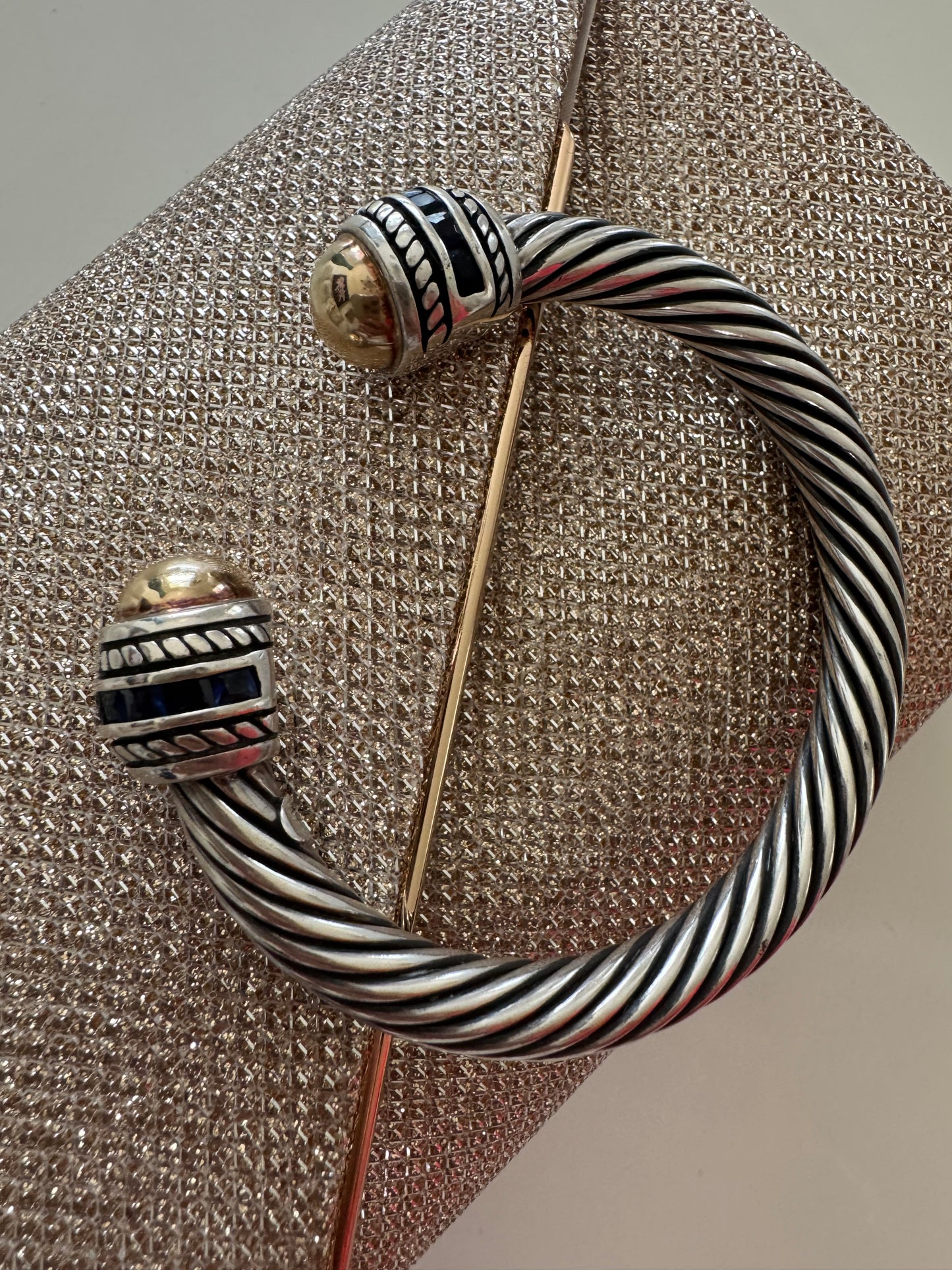 Bangle from Colombia in Sterling Silver and 18K gold with blue sapphires