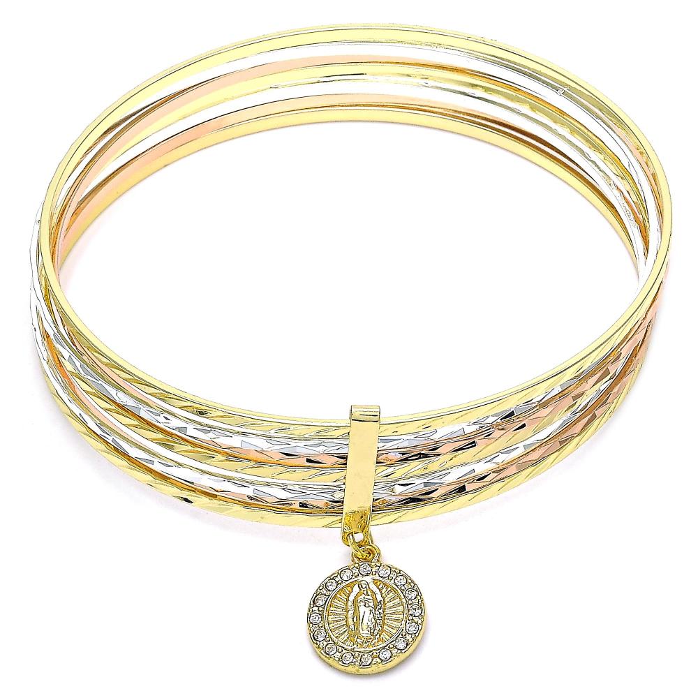 Tri color bangle set with Our Lady of Guadalupe medal white cubic zirconia