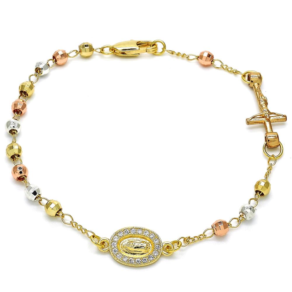 Tri tone bracelet with Our Lady of Guadalupe and crucifix