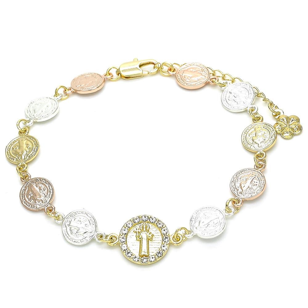 Tricolor Saint Benedict with cubic zirconia bracelet