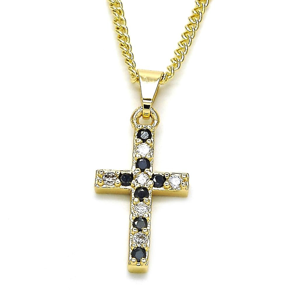 18K gold layered blue and white cubic zirconia cross with 20” chain