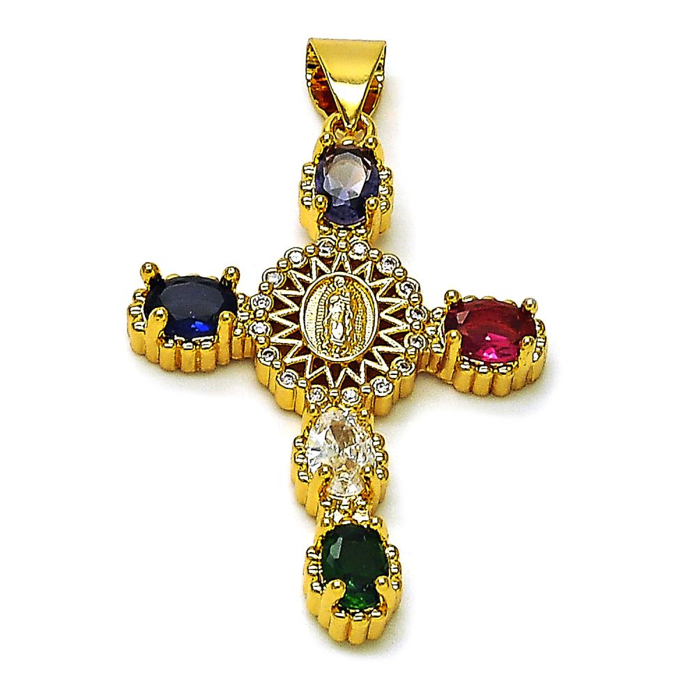 Cross color cubic zirconia Guadalupe medal