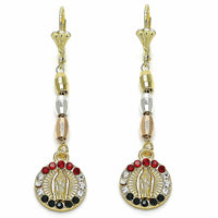 Tri color long earrings with our lady of Guadalupe medal with colors