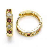 Hoops huggie earrings red cubic zirconia