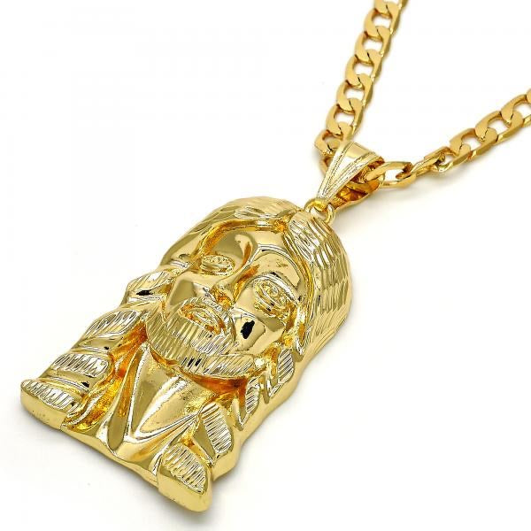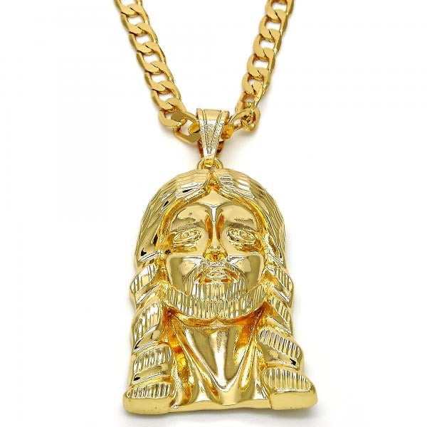 FACE OF JESUS PENDANT WITH 24” CHAIN 18K GOLD OVER SILVER