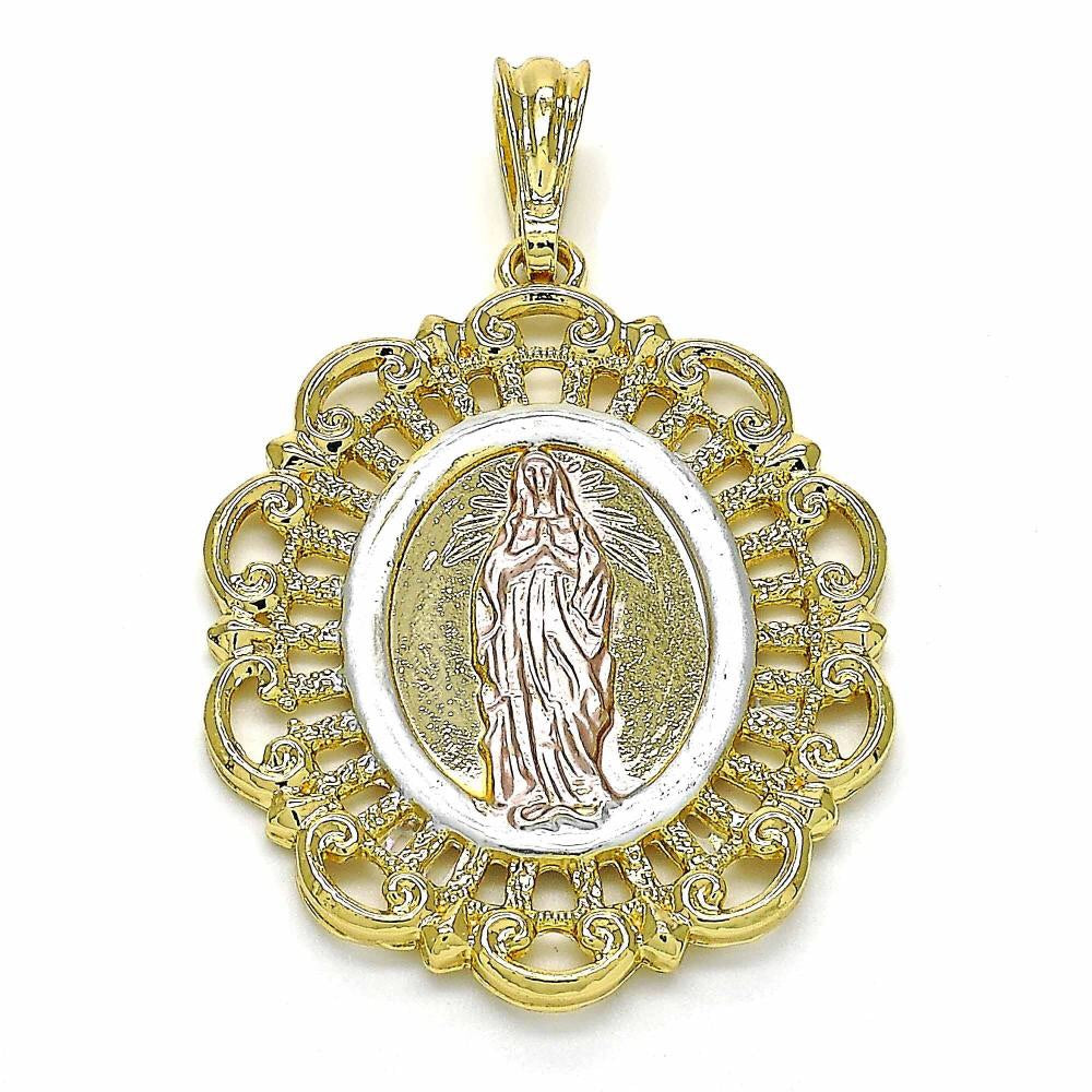 Tricolor Miraculous Medal with 20” chain 18 Gold over Silver