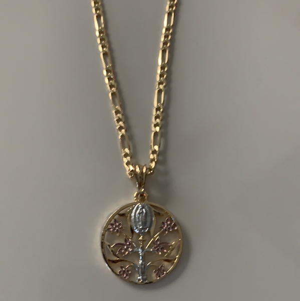 BEAUTIFUL MEDAL GUADALUPE AND CRUXIFIX PENDANT WITH A 20” CHAIN