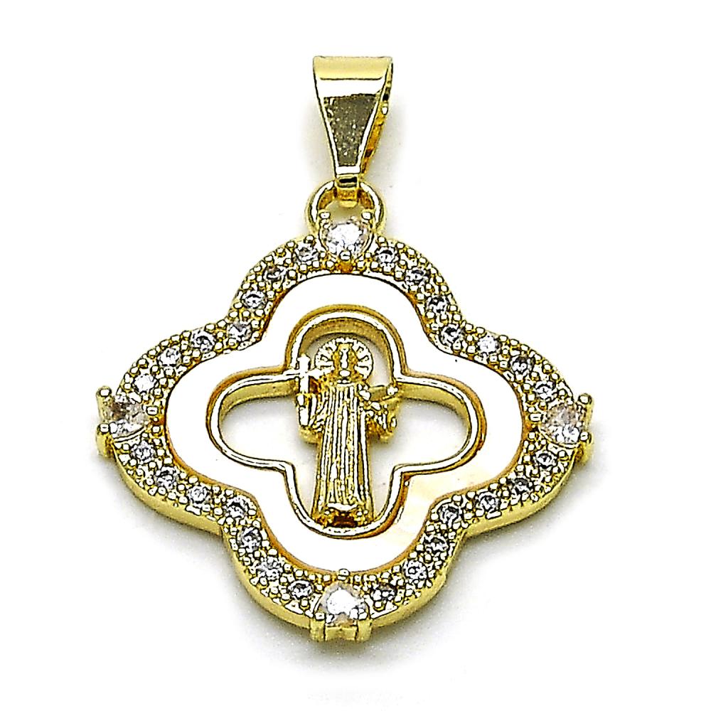 Saint Benedict Medal with mother of pearl and cubic zirconia