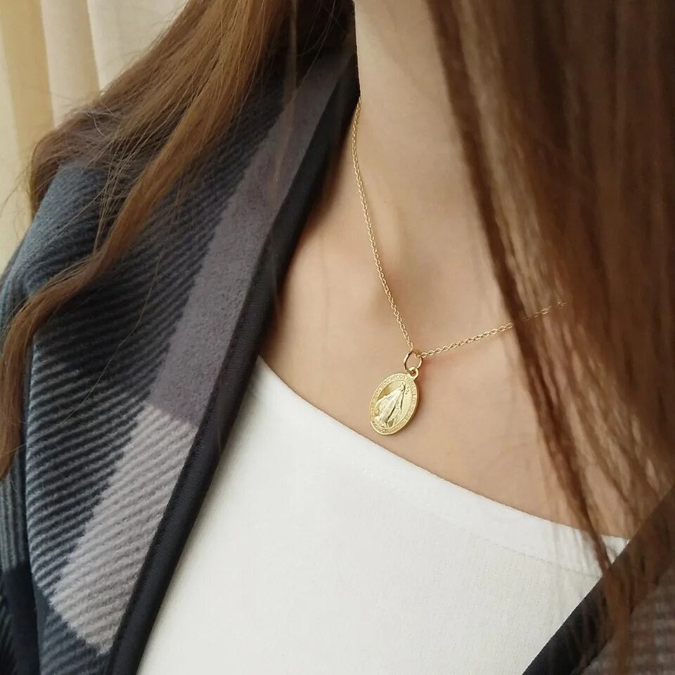 18K gold over sterling silver Small Miraculous medal with 18” chain