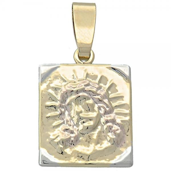 Tri color square face of Jesus medal with 18” chain