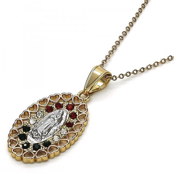 TRI TONE GUADALUPE MEDAL AND COLOR STONES