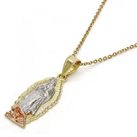 TRI TONE GUADALUPE MEDAL WITH CHAIN