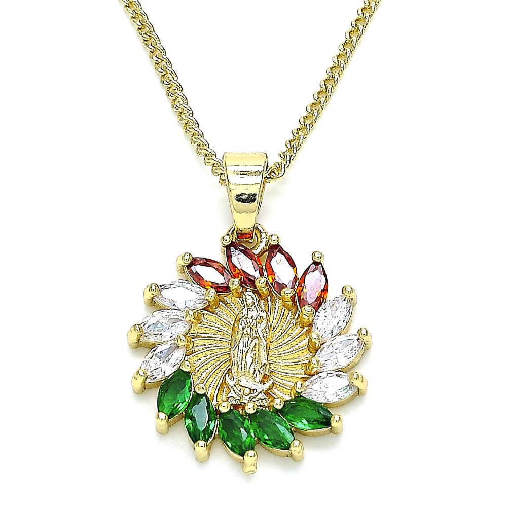 Multi color Our Lady of Guadalupe medal cubic zirconia and 20” chain