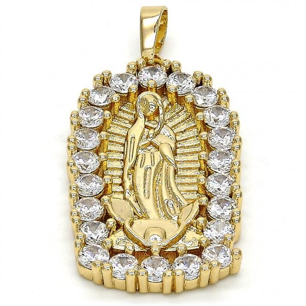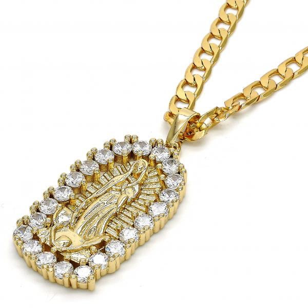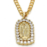 Guadalupe medal with cubic zirconia stones and 24” chain