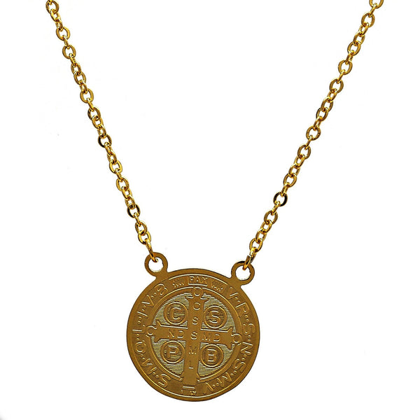 Stainless steel Saint Benedict medal with attached chain. 18”