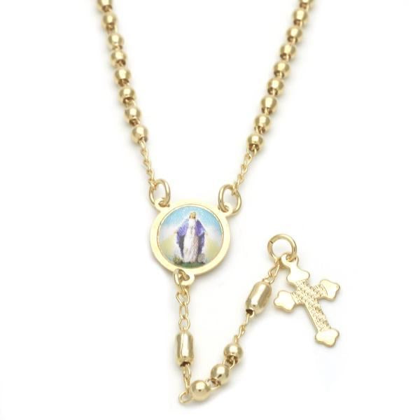 Beautiful Rosary necklace in 18k gold over silver with Miraculous medal in color 18”