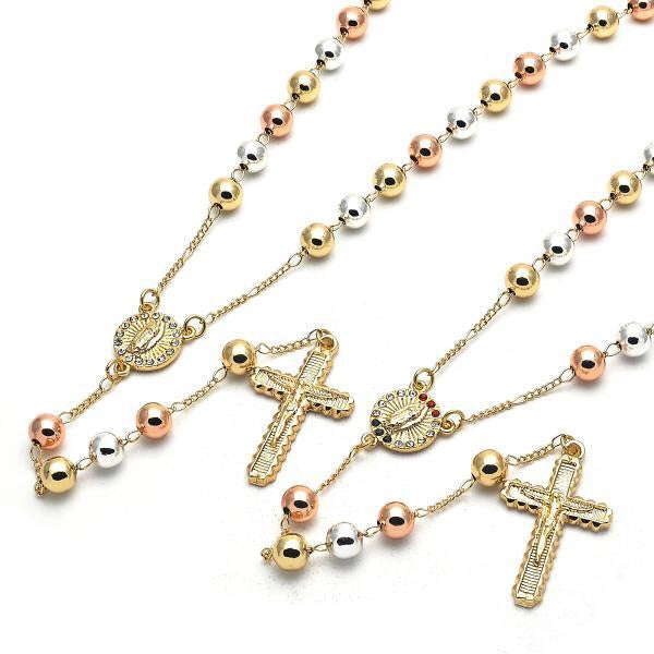 Tricolor Rosary necklace 24” Guadalupe Medal