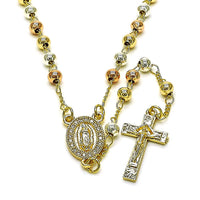 Tri color 18k gold layered Rosary necklace with Guadalupe medal cubic zirconia