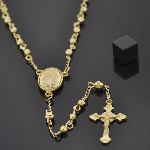 18K Gold Over Silver Rosary necklace Guadalupe medal . It is 24” long