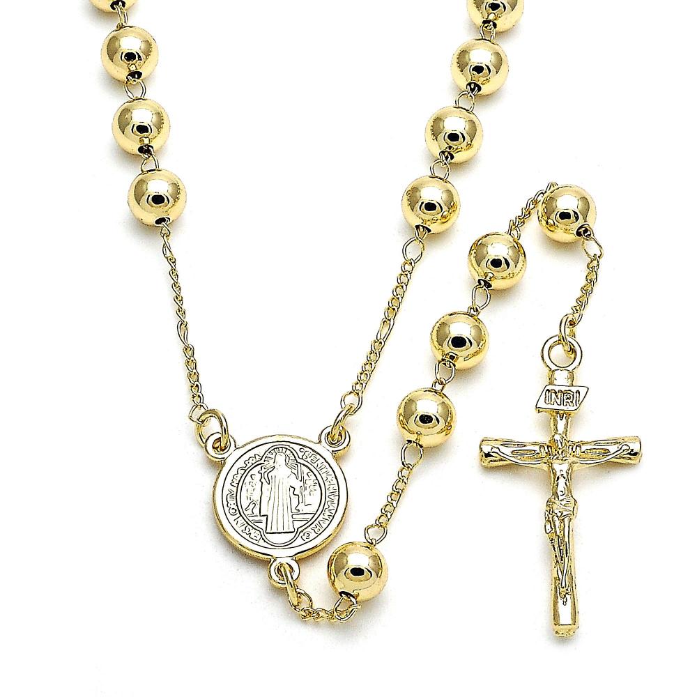 Rosary necklace round beads with saint Benedict medal and beautiful crucifix