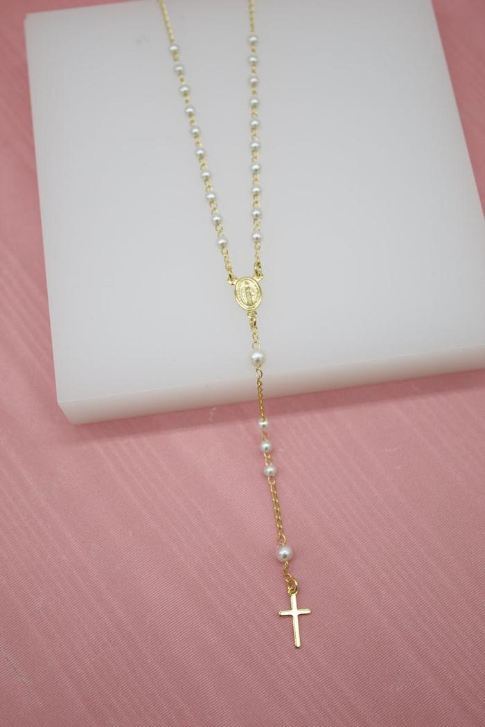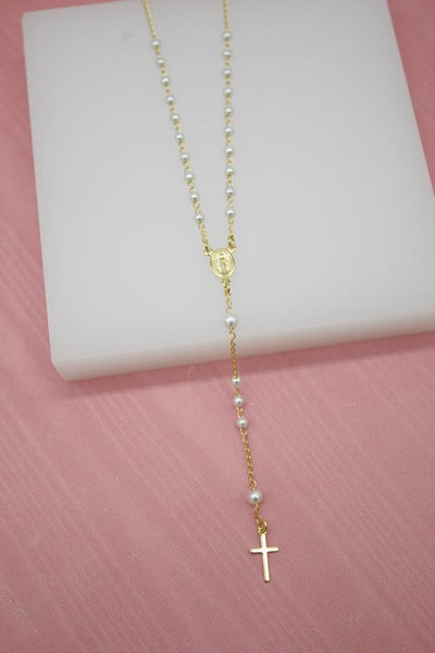 18K Gold over Silver Pearl beads rosary necklace