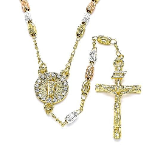 Tricolor Rosary necklace oval beads Saint Jude medal