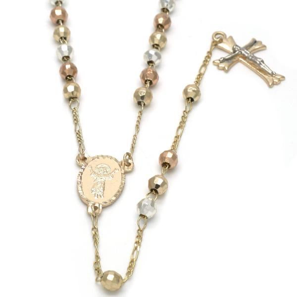 Tri color Divino niño Rosary necklace. 30” long