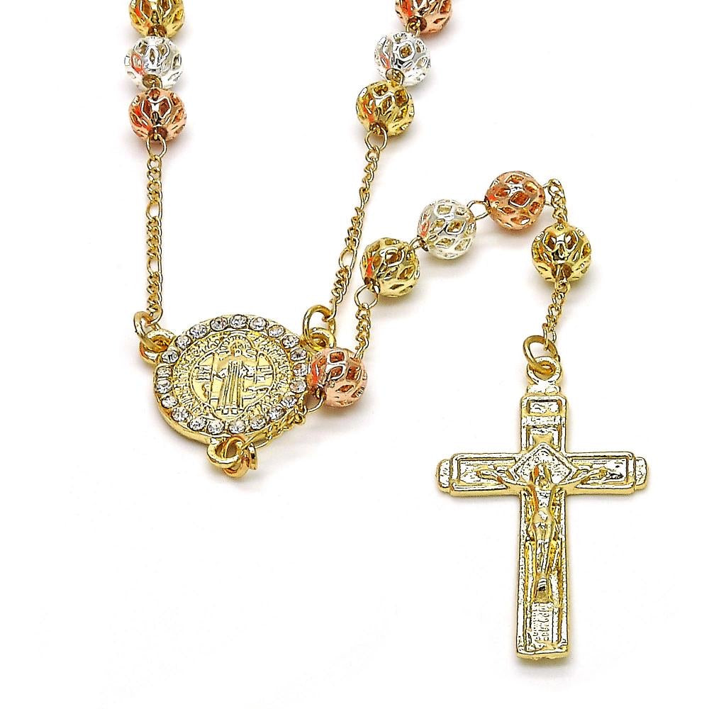 Rosary necklace tricolor with Saint Benedict Medal with cubic zirconia 24”