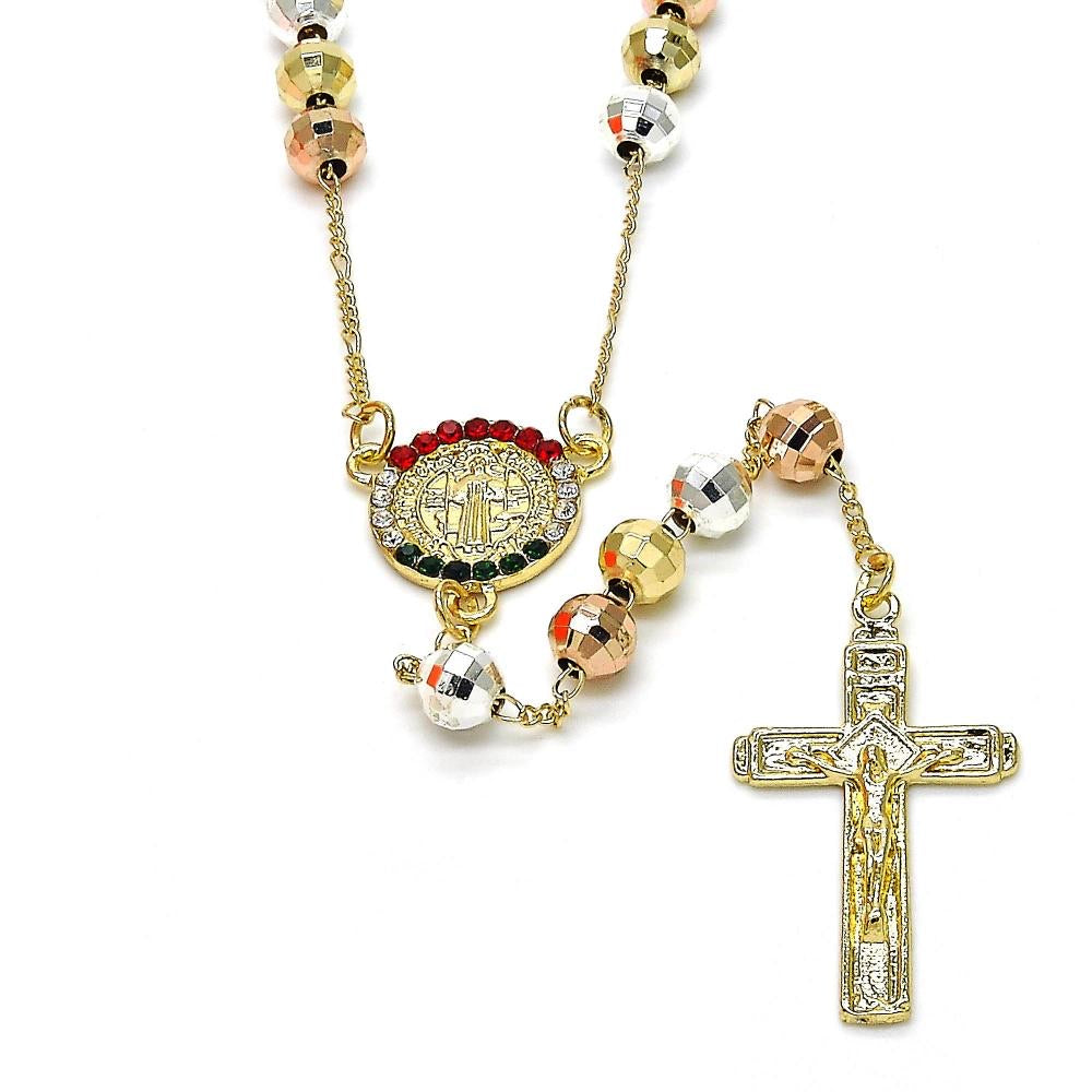 Rosary necklace tricolor Saint Benedict color medal 24”