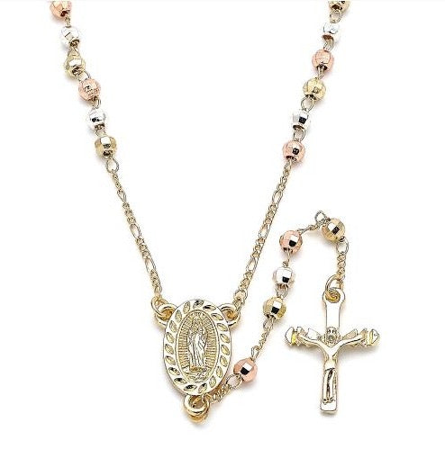 Tricolor Rosary necklace with Guadalupe medal size 24”