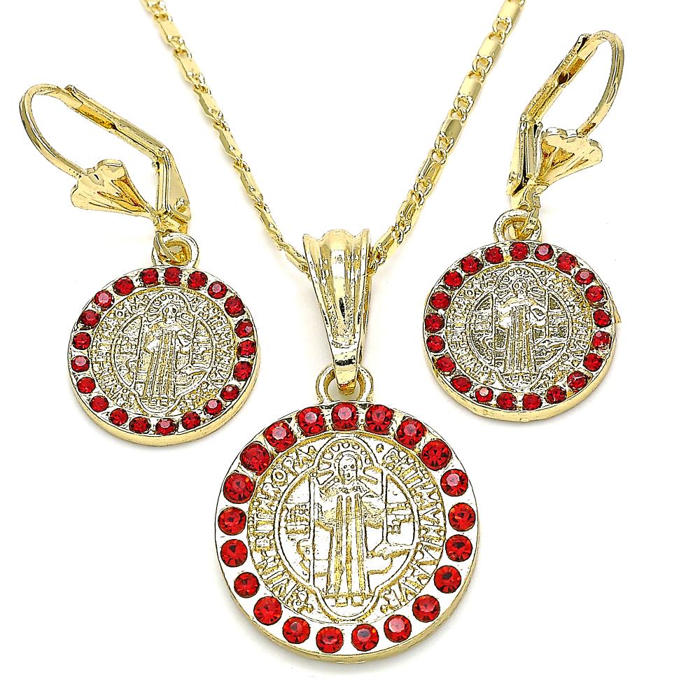 Saint Benedict set (earrings and necklace). Red cubic zirconia