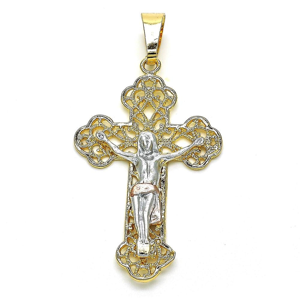 Two tone crucifix with 18” chain