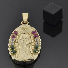18 K Gold Over Sterling Silver Guadalupe medal with cubic zirconia stones and 20” chain